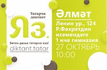 "Татарча диктант" акциясе 2016 елдан башлап үткәрелә. Узган ел акциядә Россиянең 20 төбәгеннән һәм 10 чит илдән ике меңнән артык кеше катнашты. Акциянең максаты — татар телендә хатасыз язарга өйрәнү, әдәби татар телен кулланучылар санын арттыру, татар әдәбияты әсәрләренә киң җәмәгатьчелекнең игътибарын юнәлтү.Быел акция 27 октябрьдә үткәрелде. -