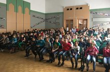 Бүген башлангыч сыйныфлар арасында "Үлемсез полк" акциясе булып узды. Кулларына якын кешеләренең фотосын тоткан кечкенә укучыларыбыз бик күркәм, җитди күренәләр иде. Алар Бөек Ватан сугышында катнашкан әби-бабаларына булган рәхмәтләрен йөрәктән чыккан чыккан матур җырлары, шигырьләре аша белдерделәр. Азактан күккә ак шарлар очырдылар.
