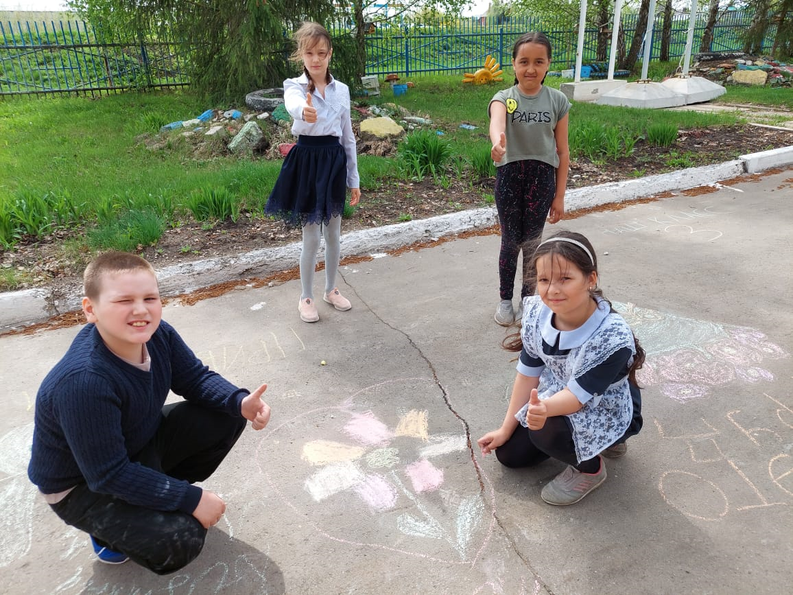 Так же учащиеся начальных классов совместно с классными руководителями рисовали на асфальте.