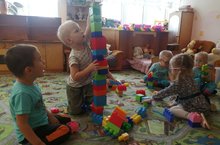 Закрепить умения строить башни разной высоты из деталей мелкого строительного материала (кубиков и призмы).