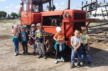 Уңыш җыю вакыты җитү сәбәпле, балалар белән машина трактор паркына сәяхәт ясадык.