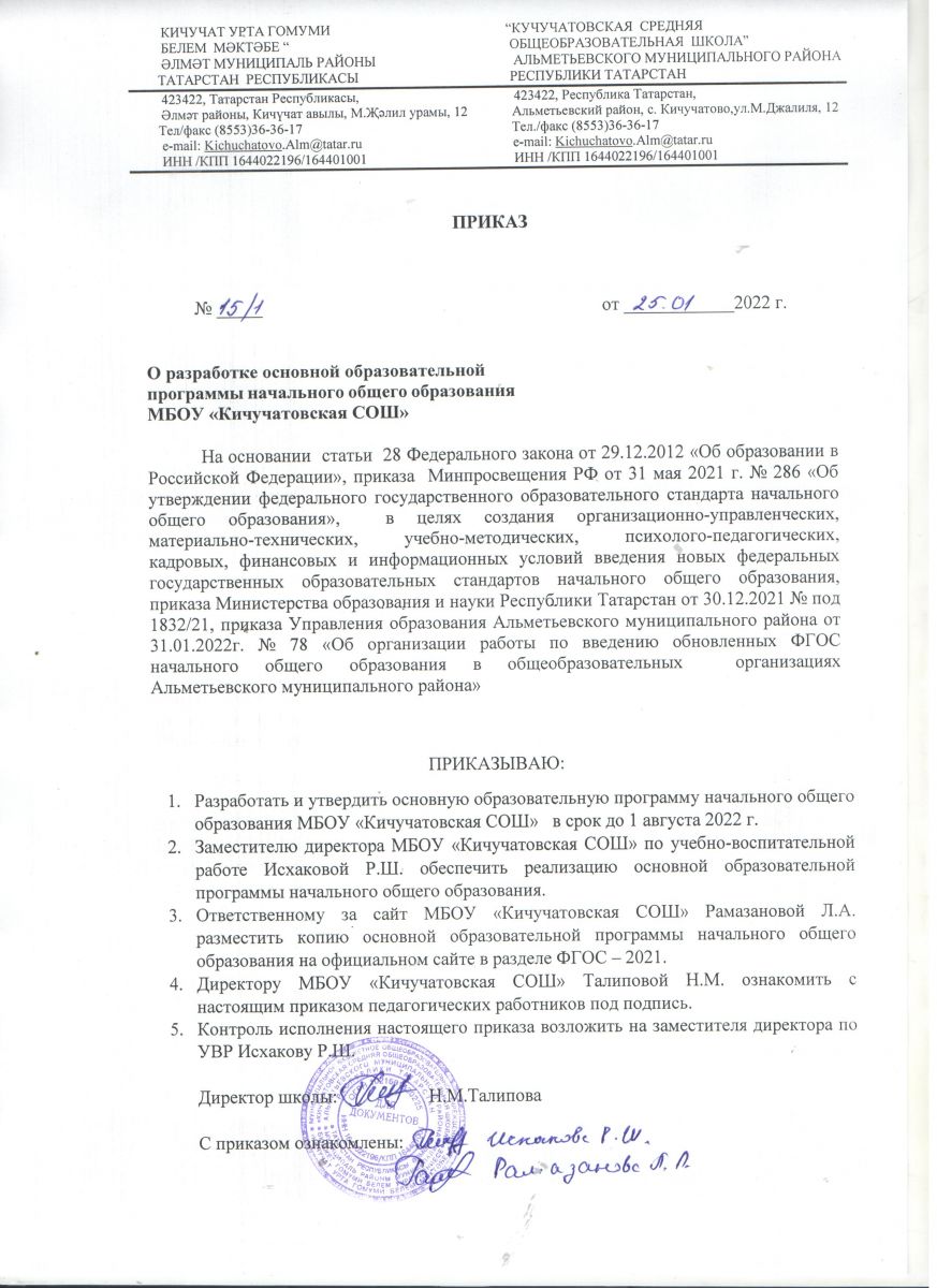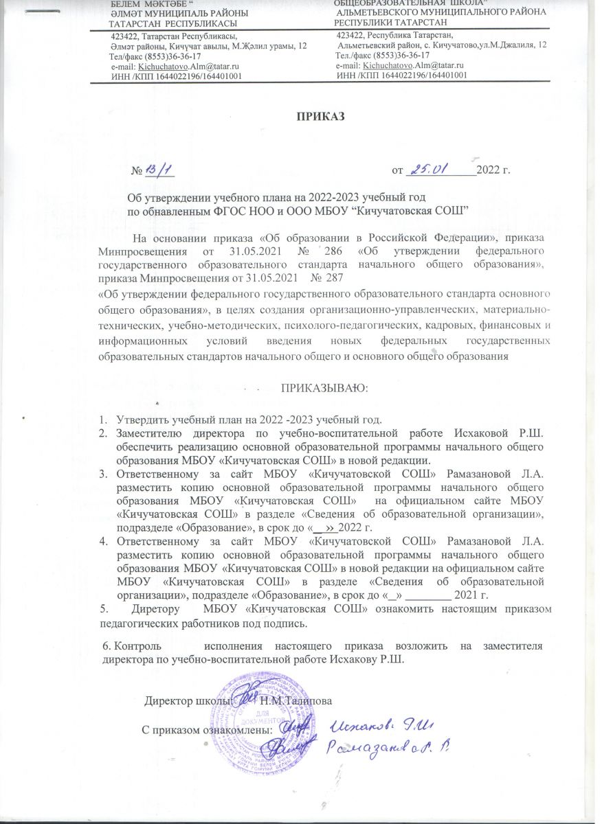 Муниципальное бюджетное общеобразовательное учреждение "Кичучатовская средняя общеобразовательная школа" Альметьевского муниципального района Республики Татарстан