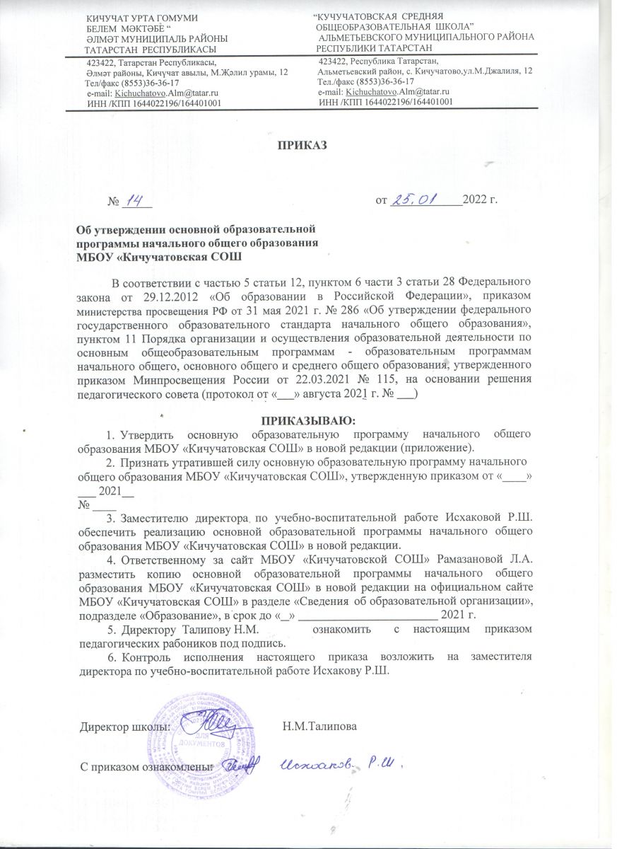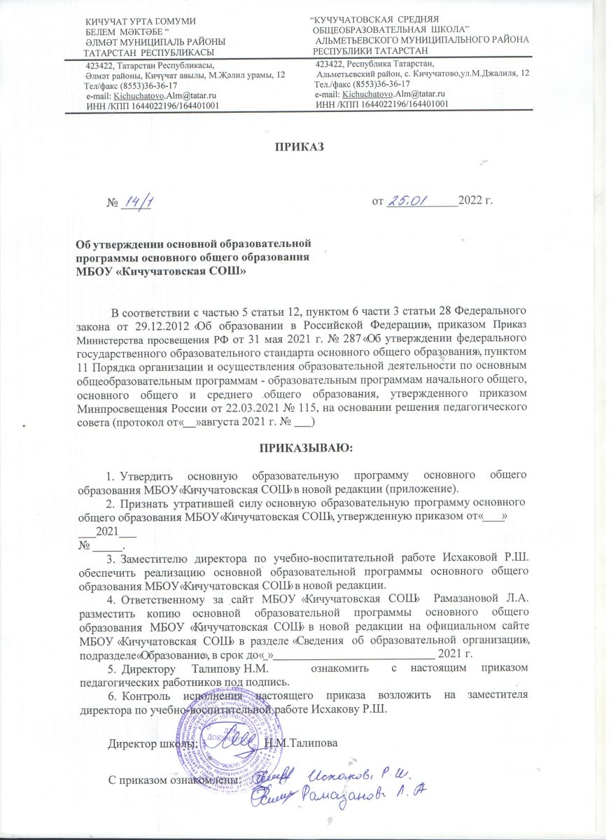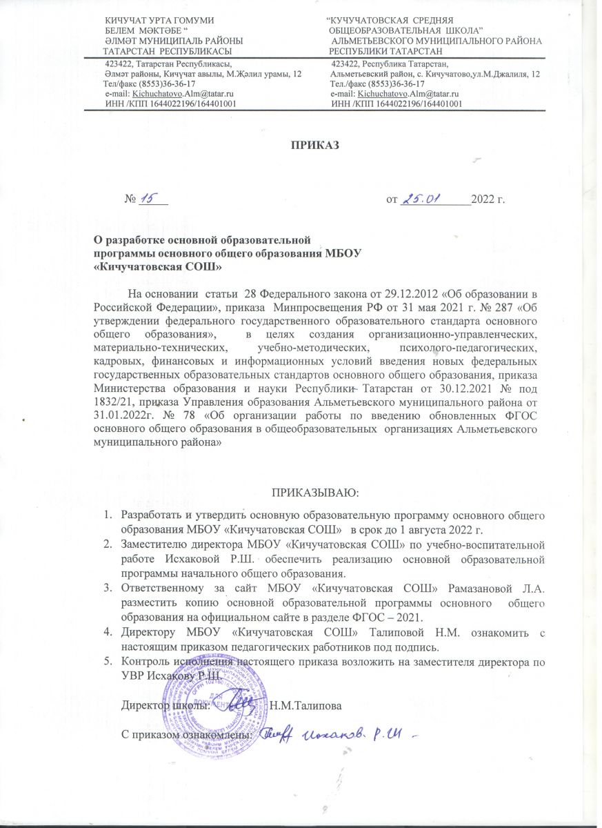 | Короткое название: | МБОУ "Кичучатовская СОШ" |
