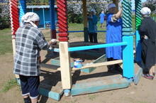 Коллектив детского сада приняли активное участие в покраске детской площадки