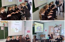 В рамках года национальных культур учащиеся начальных классов познакомились с татарскими национальными играми. Калимуллина А.Р. рассказала о классификации татарских фольклорных игр. Дети отгадывали загадки о предметах быта в старину, вспоминали поговорки, играли в игру "Колечко-колечко", "Тюбетейка".