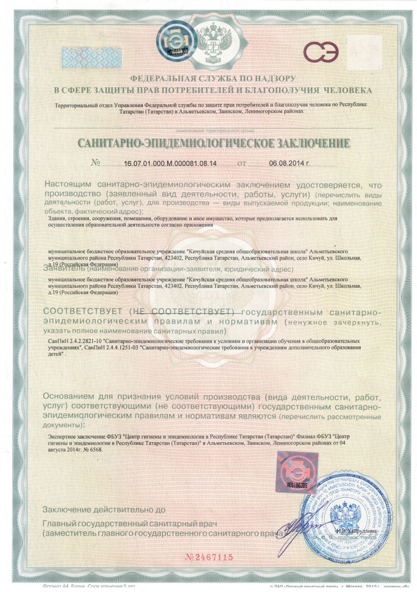 Санитарно-эпидемиологическое заключение 1, заключение 2, заключение 3