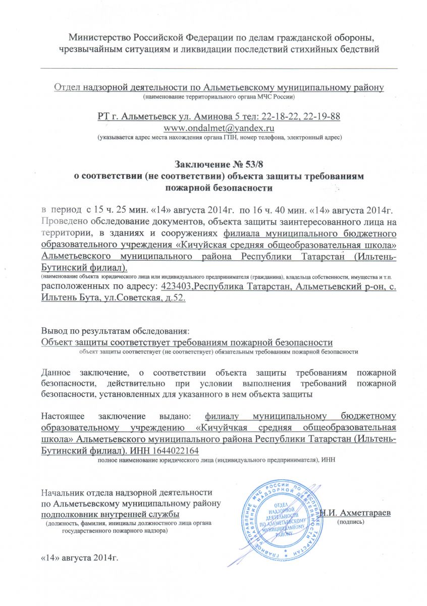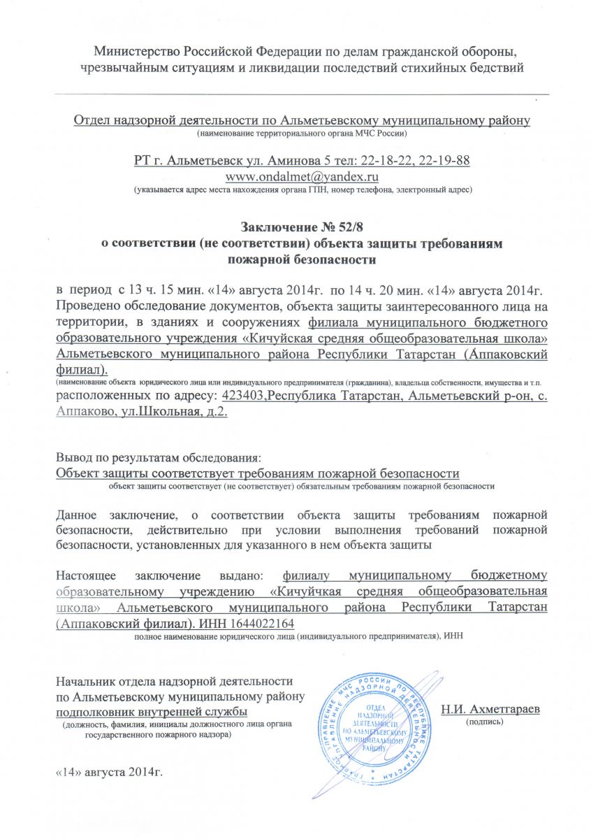 Заключение 51/8 о соответствии защиты требованиям пожарной безопасности   1 страница,  2 страница,3 станица.