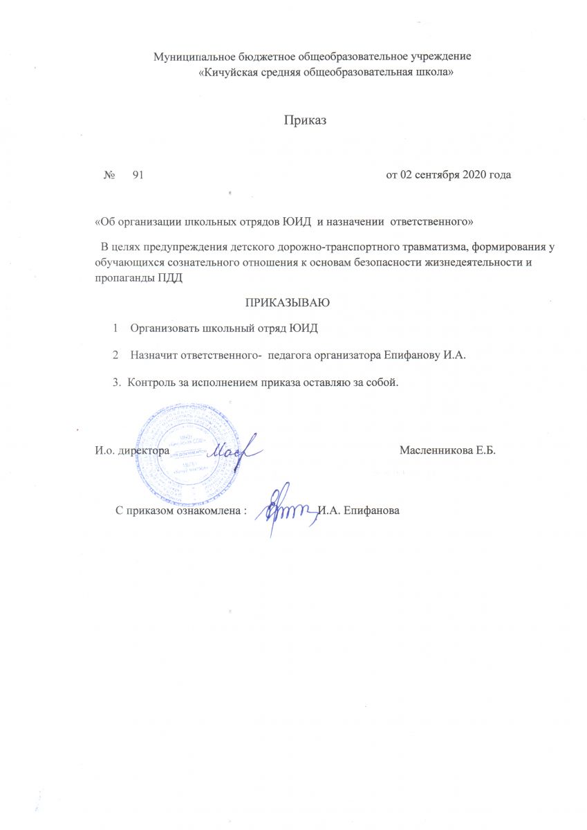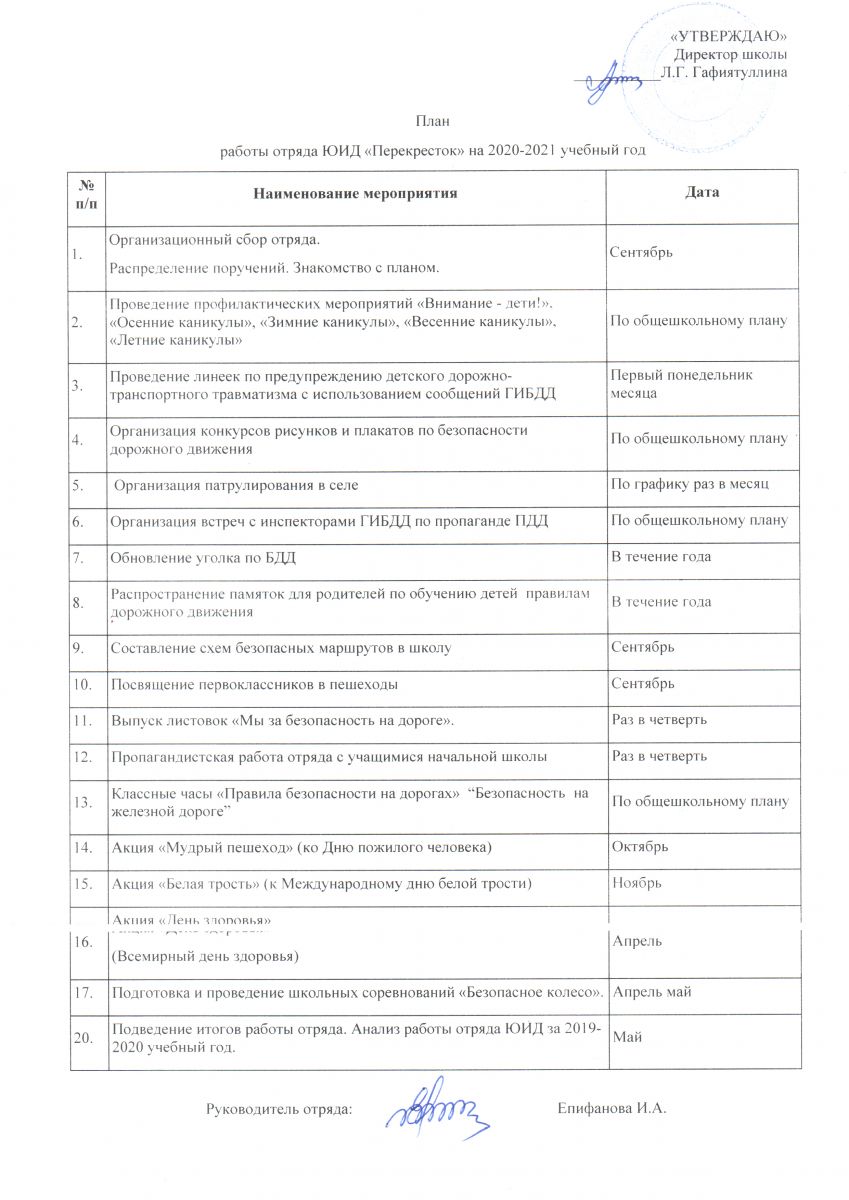 Совместный план работы с ГИБДД по профилактике ДДТ по МБОУ "Кичуйская СОШ" на 2020/2021 учебный год