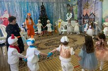 Ребята с удовольствием водили хороводы, пели любимые новогодние песни, танцевали, играли в весёлые игры. К ним в гости пришла Баба Яга. В конце праздника дети задули огоньки на ёлке и попрощались с ней до следующего года. Праздник получился весёлым и интересным. -