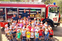Для ребят огнеборцы продемонстрировали технику пожаротушения, рассказали о снаряжении, находящемся в пожарной машине, о том, какие средства пожаротушения используются для ликвидации огня, с помощью каких инструментов проводят аварийно-спасательные работы.