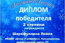 Наша воспитанница старшей группы Шарифуллина Лейла награждена дипломом 2 степени в муниципальном конкурсе чтецов "Зимушка - Зима".