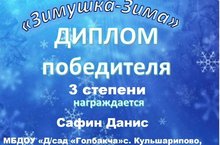 Наш воспитанник старшей группы Сафин Данис награжден дипломом 3 степени в муниципальном конкурсе чтецов "Зимушка - Зима".