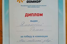 Наша воспитанница Ямалеева Ралина награждена дипломом победителя в республиканском конкурсе детского рисунка "Мой любимый дом" в номинации "Мой любимый двор"