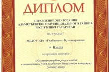 По итогам городского конкурса «На лучшую разработку игр, пособий в соответствии с УМК по обучению дошкольников татарскому(родному) языку» наш детский сад занял 2 место.