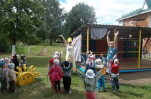 С детьми младшей группы было проведено развлечение на тему «Вот оно какое, наше лето» Праздник посетили такие гости как: Петрушка и Зайчик. Дети вместе с гостями пели песни, играли в различные подвижные игры. Данное развлечение оставило у детей массу впечатлений и хорошее настроение.