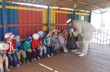 Зурлар төркеме балалары белән “Кояшка ярдәм итү” дигән мавыктыргыч әкият әзерләп чыгыш ясадык. Максат: Туган як табигатенә мәхәббәт тәрбияләүне дәвам итү; табигать кочагында үзеңне дөрес тоту; әкият аша тере һәм тере булмаган табигатьтәге бәйләнешне аңларга өйрәтү.