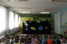 22 нче июль көнне бакчабызда «Алина» курчак театры булып китте. Алар безгә рус телендә «Сорока склока» исемле әкият күрсәттеләр. Менә шушындый әкиятләр карау, кызыклы таныш геройлар белән очрашу балаларда рус теленә кызыксыну уята һәм телне өйрәнүгә зур этәргеч ясый.