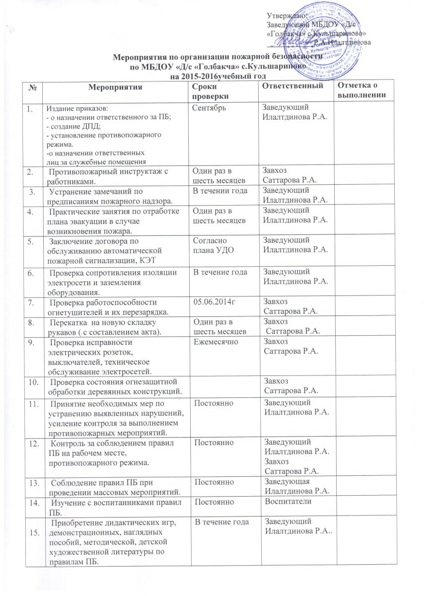Мероприятия по организации пожарной безопасности