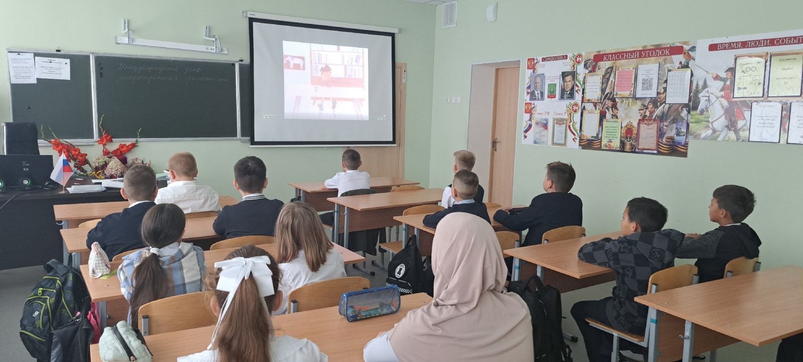 В рамках этого дня, в школе совместно с советником директора, руководителем отряда юнармия и классными руководителями были организованы кинолекторий "Путешествие в мир грамотности", где дети с удовольствием посмотрели мультфильмы" Слоненок пошел учиться", "Приключения запятой и точки",а с юнармейским отрядом исторический турнир" Грамотность на Руси".