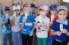 Наши ребята сами изготовили макеты светофора и подарили их водителям и пешеходам.