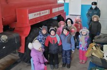 В рамках проведения тематической недели наши воспитанники посетили пожарную часть с целью ознакомления дошкольников с работой пожарных. Эту экскурсию дети ждали с нетерпением. С большим удовольствием и интересом рассматривали пожарную машину. им разрешили примерить каску пожарника, подержать пожарный рукав и даже посидеть за рулем пожарной машины.