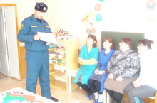 Инструктором Кузайкинской пожарной части Калистратовым Д.М. для сотрудников детского сада был проведен инструктаж по пожарной безопасности в образовательном учреждении.