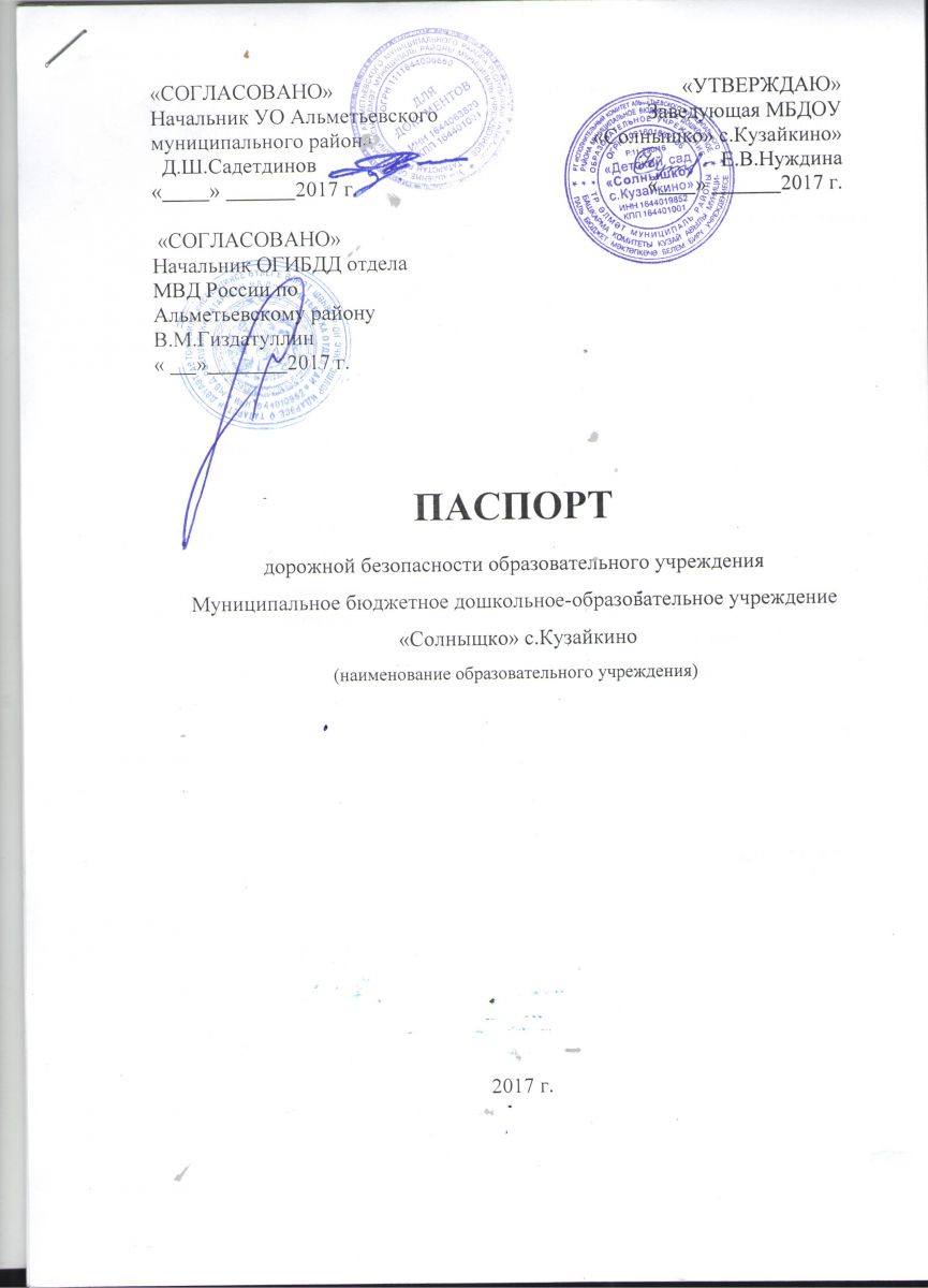 Паспорт дорожной безопасности МБДОУ "Д/с "Солнышко" с.Кузайкино"