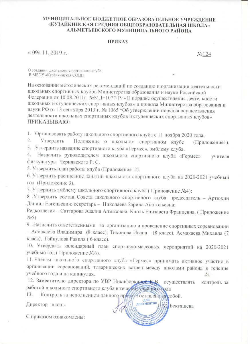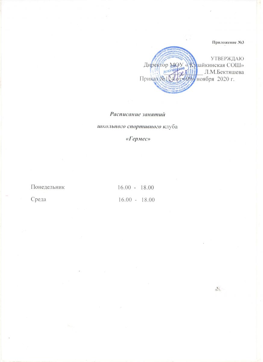 Календарный план спортивно-массовых мероприятий ШСК "Гермес" на 2020-2021 уч.г.