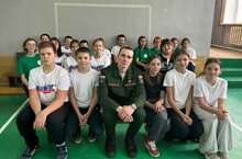 Урок мужества. Выпускник школы Магдиев Владислав рассказал о своей службе в Армии на границе Белгородской области. Ребята с интересом слушали его рассказ и задавали вопросы.