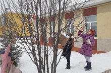 Учащиеся начальной школы приняли участие в ежегодной акции "Птичья столовая", ребята развесили кормушки и насыпали птицам зерно и семечки