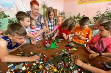 С детьми из пришкольного лагеря посетили СДК, ребята собирали из конструктора одну общую модель. Также в школе с детьми делали макеты роботов.