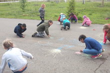 В рамках "Дня защиты детей" в школе учащиеся приняли участие в конкурсе рисунков на асфальте "Мы рисуем МИР"