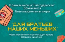 К этому событию мы, актив школы с штабом воспитательной работы, решили провести акцию по сбору средств помощи приюту бездомных животных. Его участником может стать любой желающий, без возрастных ограничений.