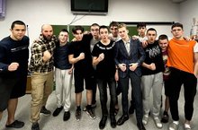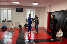 Далее ребята продолжили борьбу в зале смешанных единоборств. Почетным гостем на открытом ковре стал кандидат в мастера спорта по самбо Илдар Мирзаевич Бурганов, дедушка учащегося 6А класса Амира Гильфанова. Он провел мастер-класс по самбо, показал эффективные броски и приемы, которые также можно использовать и в джиу-джитсу. Ребятам смогли пообщаться с спортсменов, имеющим многолетний опыт на ринге, и задать ему интересующие их вопросы. -