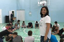 В спортзале наша Роза Зуфаровна проводит тренинг для 7-ых классов! В программе коммуникативные упражнения и разные игры!