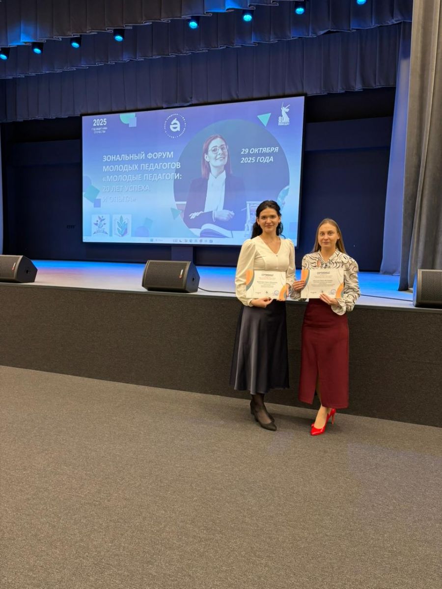 29.10.25 г. в рамках зонального форума молодых педагогов "Молодые педагоги: 20 лет успеха и опыта" учителя истории и обществознания Данилова Д.В. и Кривочкина К.В. приняли участие в форуме и провели мастер- классы по темам "Применение арт-педагогики при изучении исторических личностей и политических деятелей на уроках истории и обществознания" и "Применение искусственного интеллекта с целью повышения интереса к истории". Получили сертификаты о выступлении, много новой и полезной информации и обменялись опытом с коллегами.