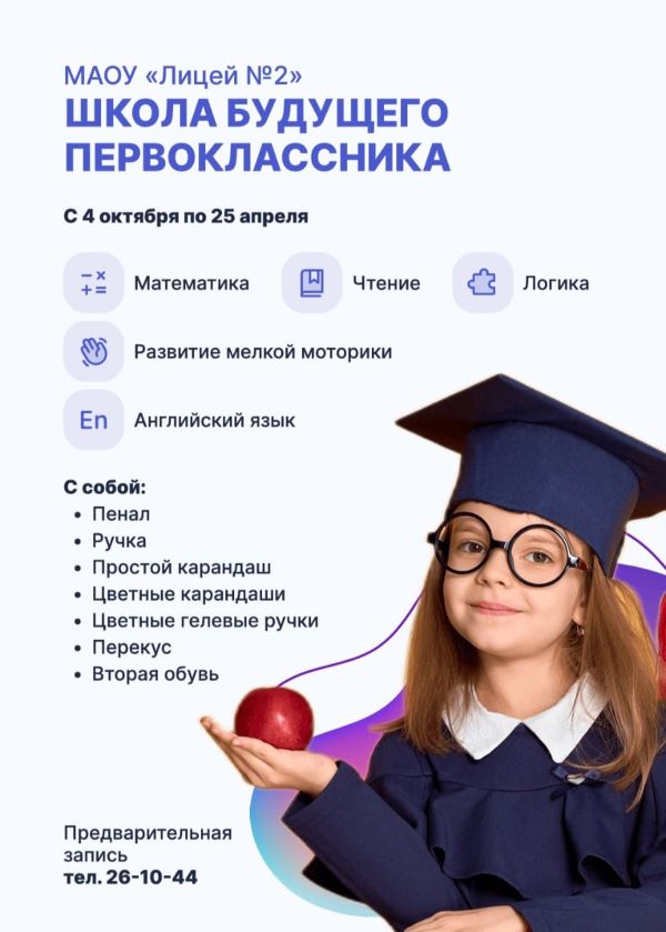 Уважаемые родители будущих первоклассников! Следующее занятие в "Школе Будущий первоклассник" состоится 8 ноября 2025 г.