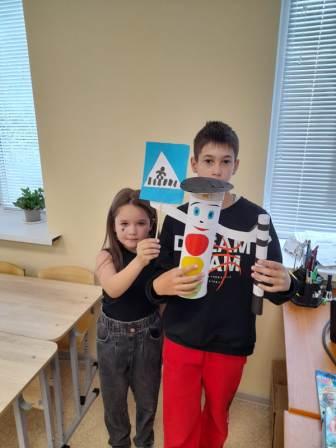 У ребят вначале дня была уникальная возможность вспомнить и закрепить на практике правила дорожного движения по пути в бассейн . После возвращения в школу ребята изготовили вот такие замечательные поделки.