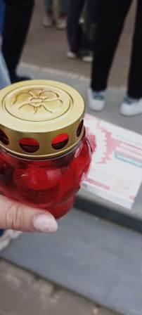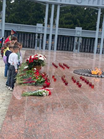Ребята совершили пешую прогулку к Вечному огню. Где зажженными свечами почтили память погибшим в 1941-1945 гг