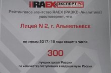 МАОУ «Лицей №2» по итогам 2017-2018 учебного года вошёл в число 300 лучших школ России по количеству поступивших в ведущие вузы России. Молодцы!