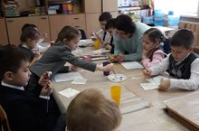 9 февраля сотрудники Альметьевской картинной галереи провели мастер-класс с учащимися 1Б класса «Рыцарь и матрёшка». Дети с большим интересом и удовольствием смастерили подарки на 23 февраля и 8 марта