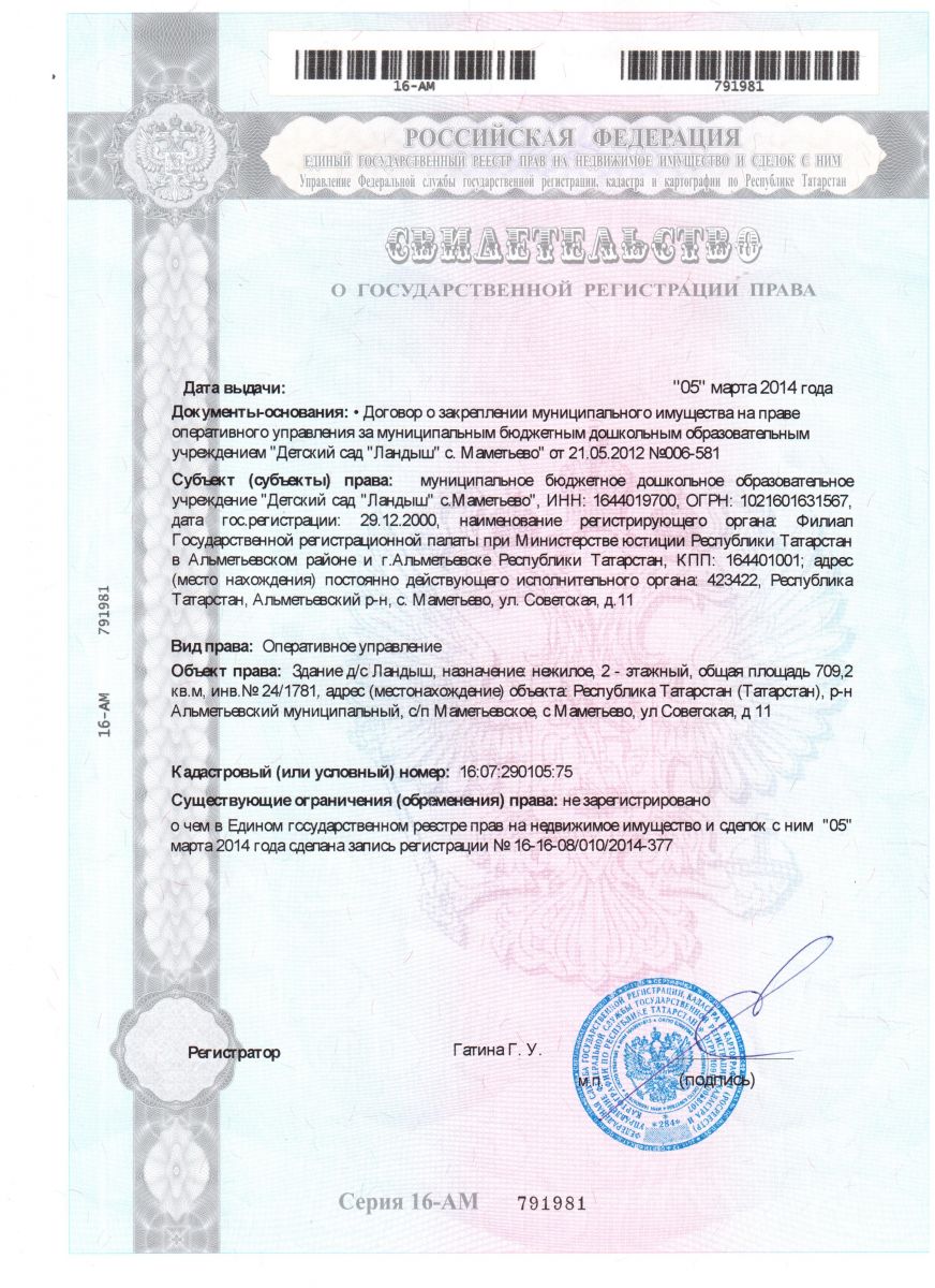 | Адрес: | 423422, Республика Татарстан, Альметьевский район, с. Маметьево, ул. Советская, д. 11/ 423422, Татарстан Республикасы, Әлмәт районы, Мәмәт авылы, Совет урамы, 11 йорт. |