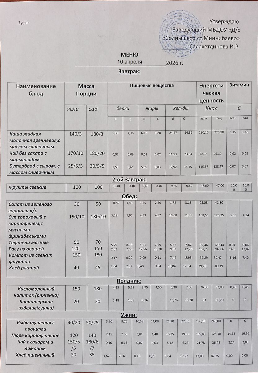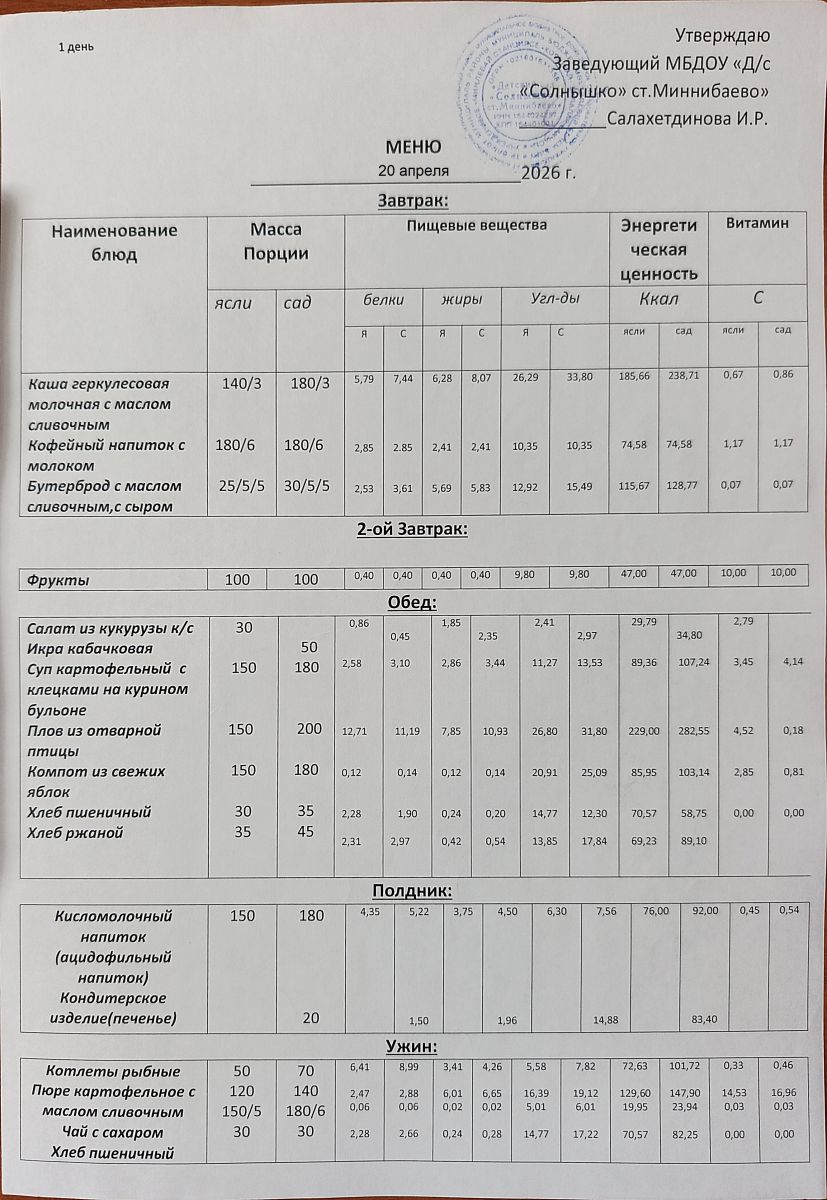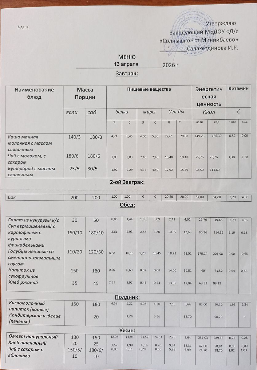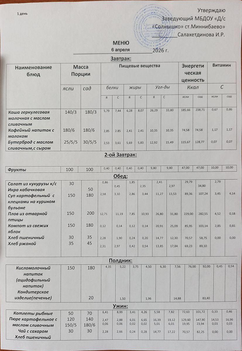 Диетическое питание в МБДОУ "Д/с "Солнышко" отсутствует