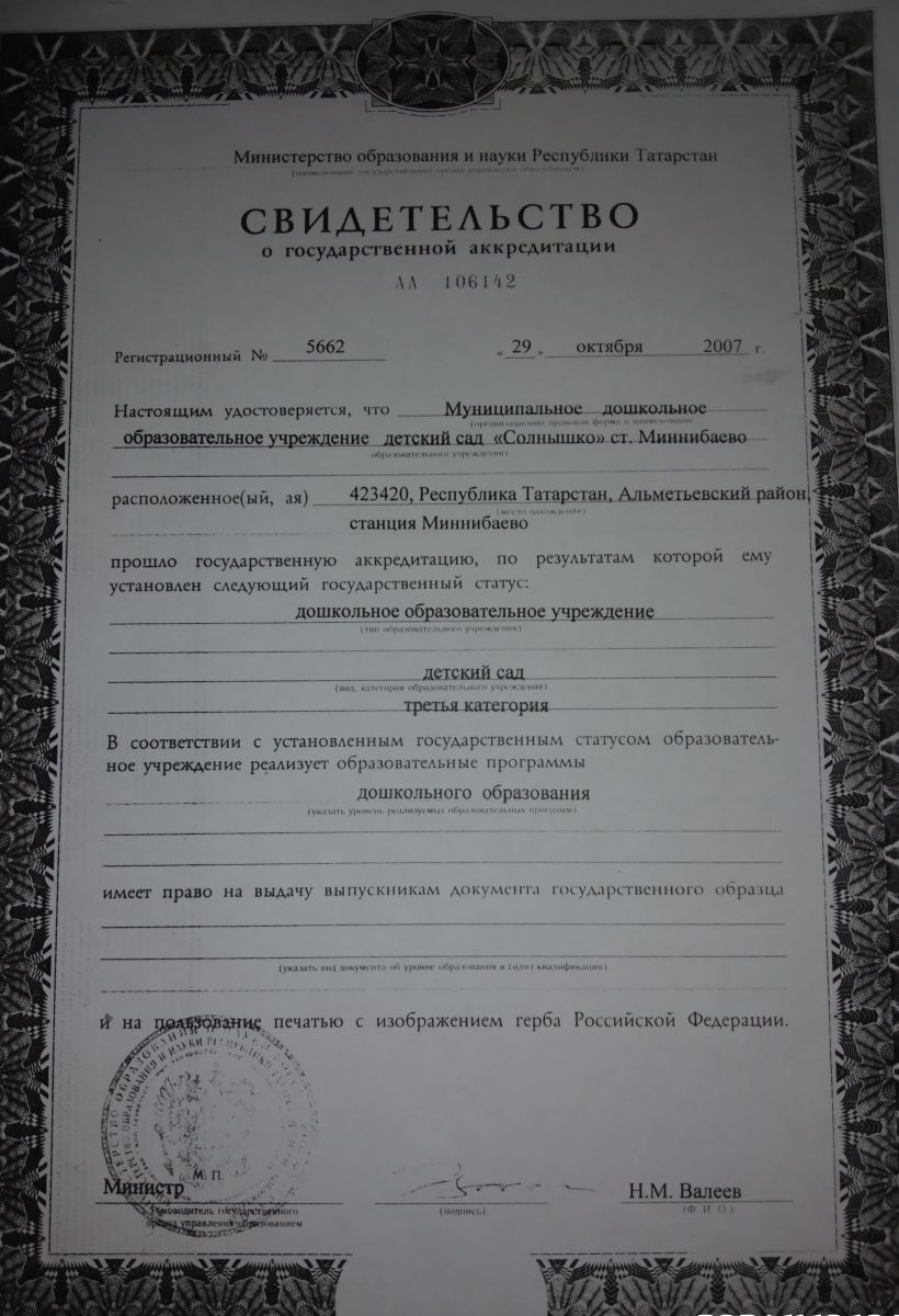 Короткое название: МБДОУ "Д/с "Солнышко" ст. Миннибаево"