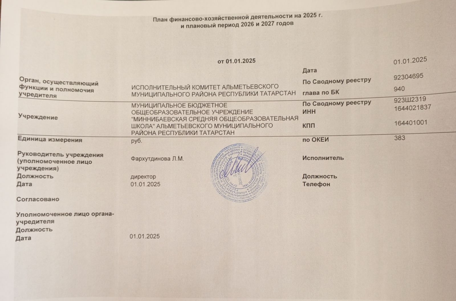 План финансово-хозяйственной деятельности на 2025г и плановый период 2026и 2027 годов.jpg
