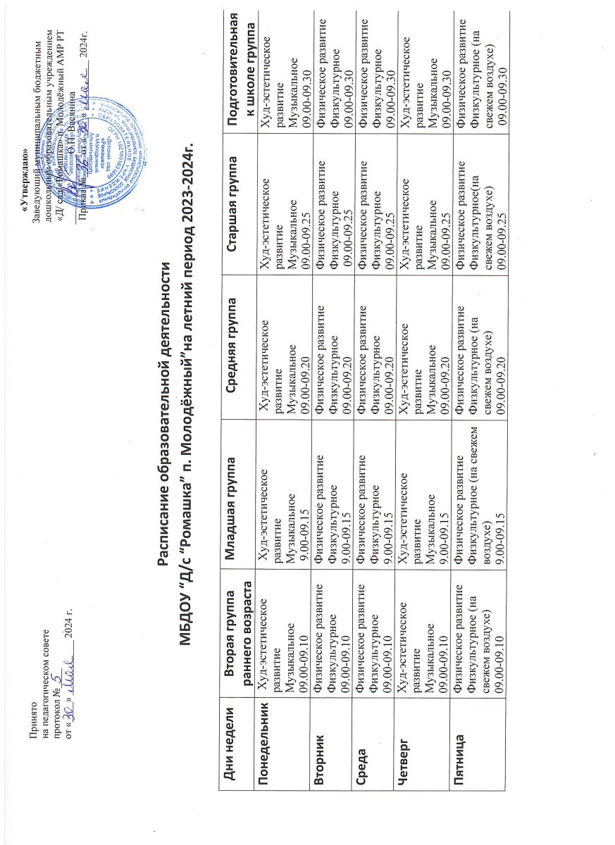 Приказ "Об организации работы детского сада на летний оздоровительный период " на 2024 год