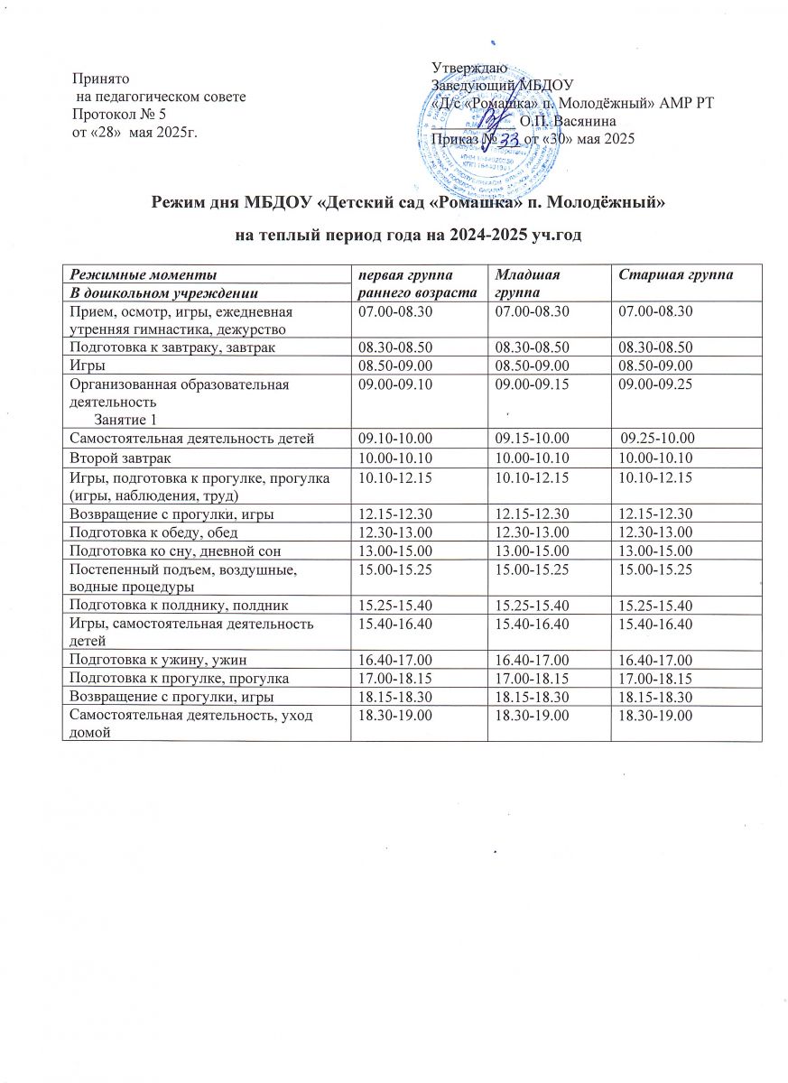 Приказ "Об организации работы детского сада на летний оздоровительный период" на 2025 год