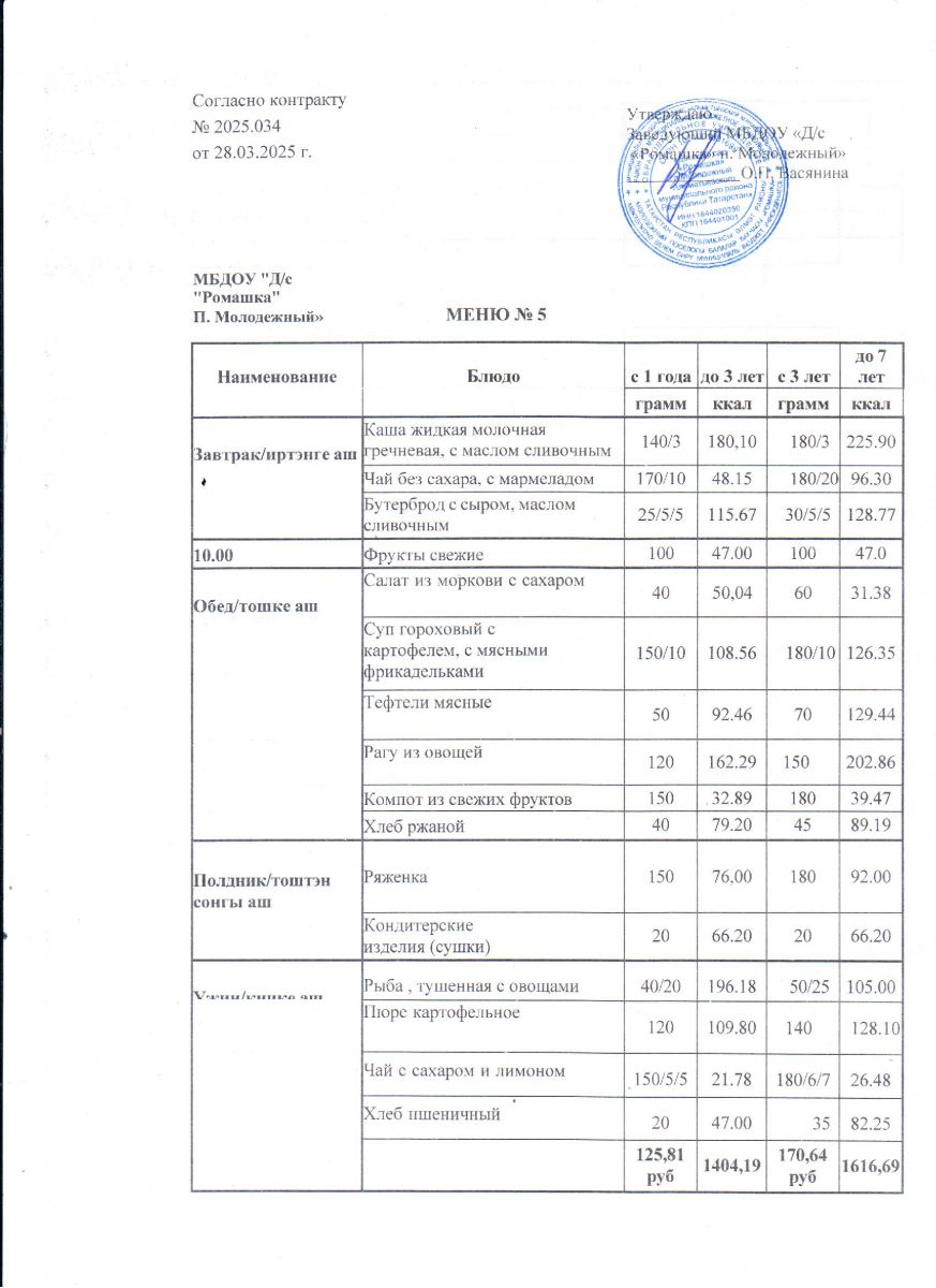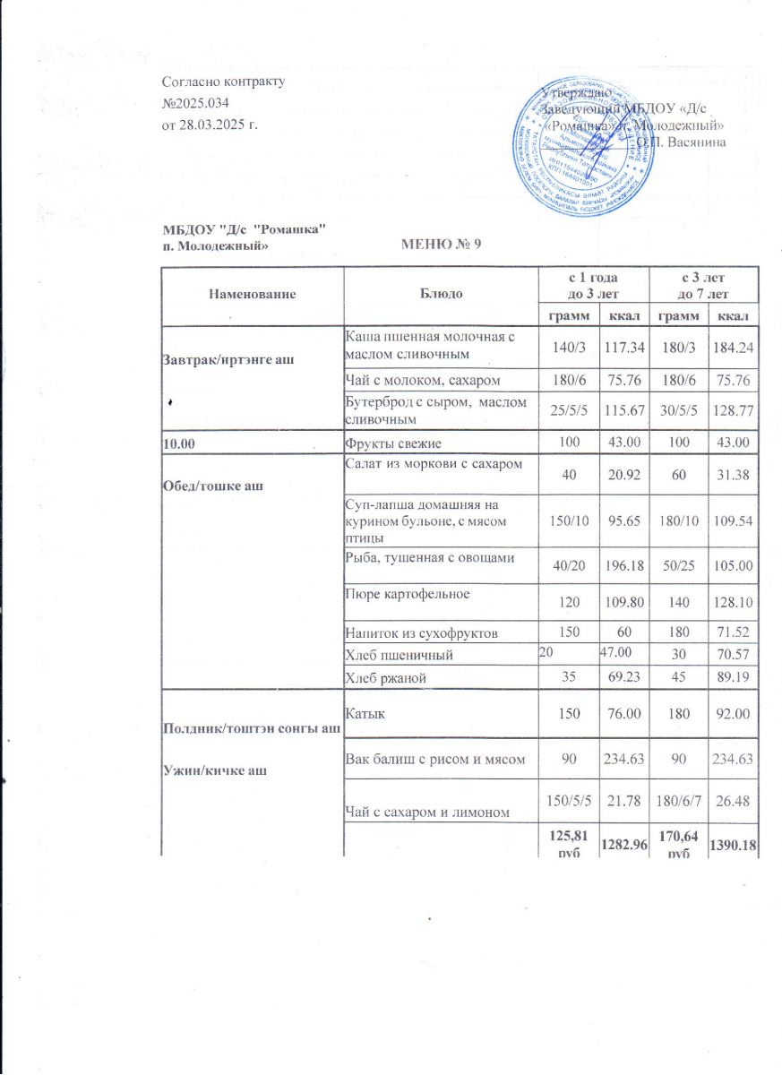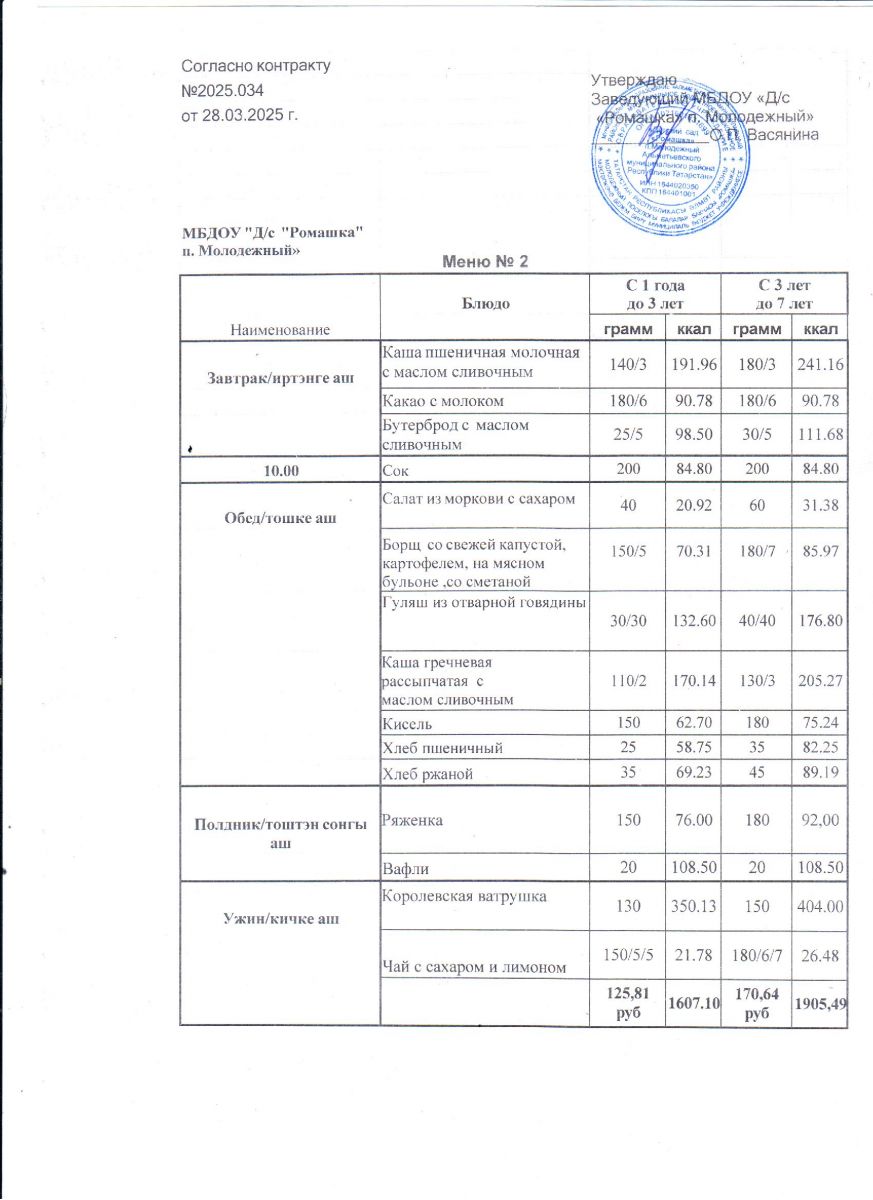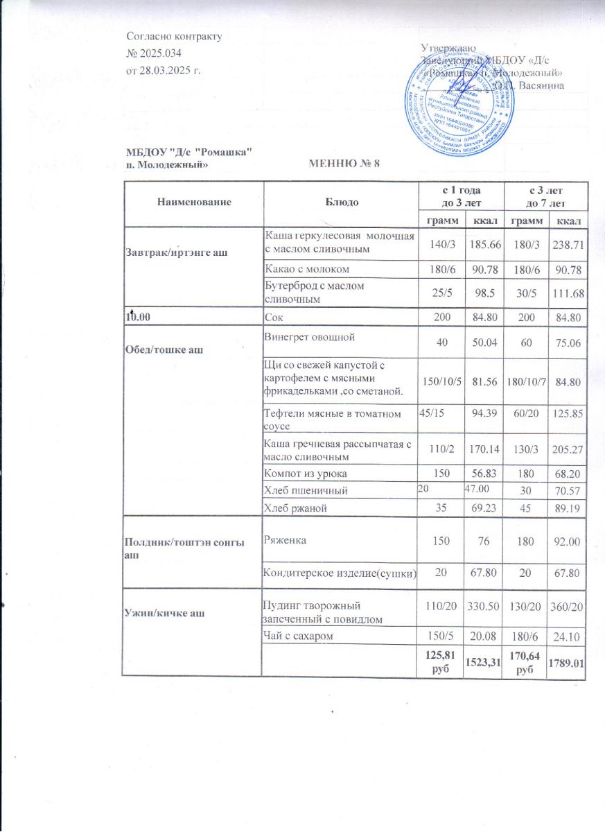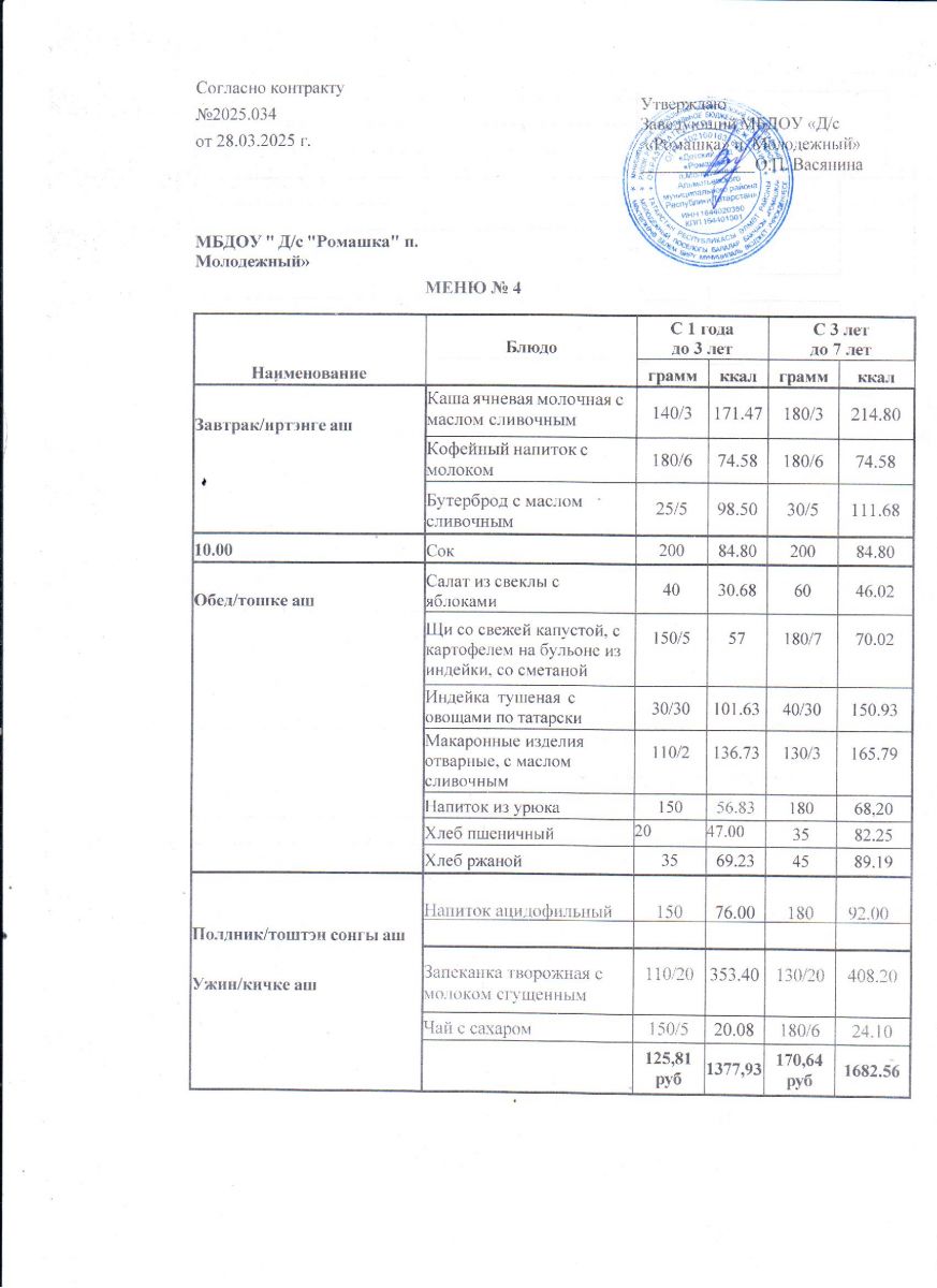 Контракт на питание №2025.034 от 28.03.2025.