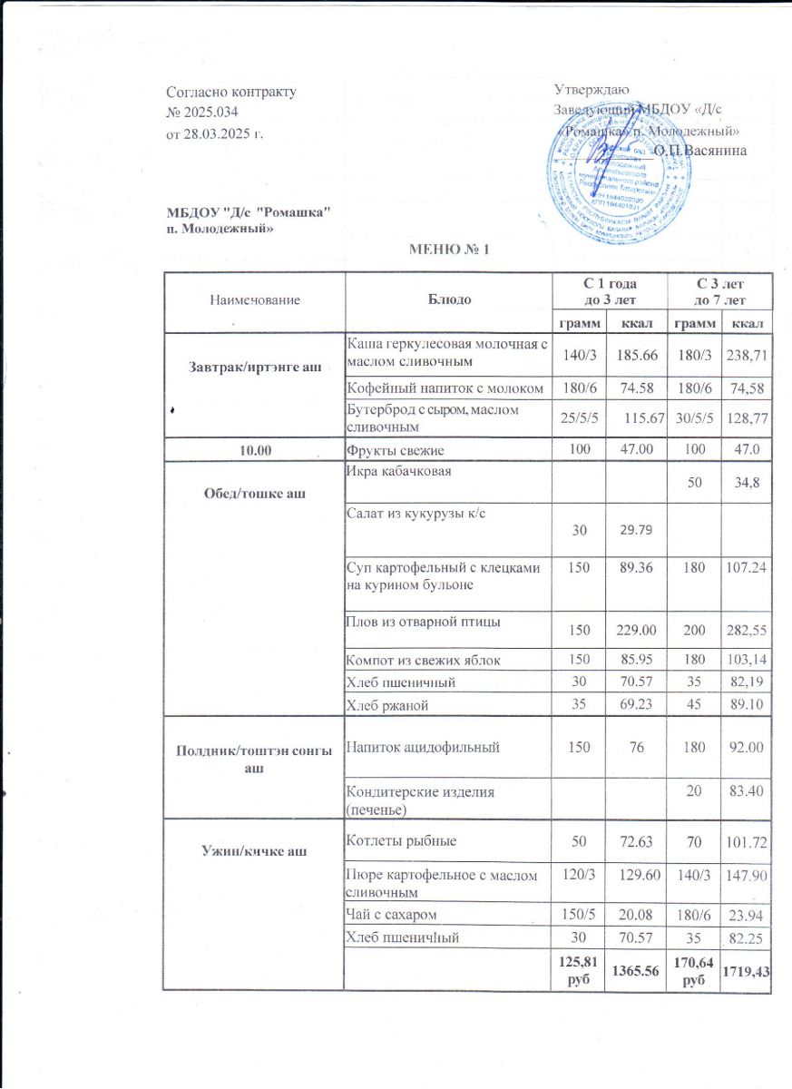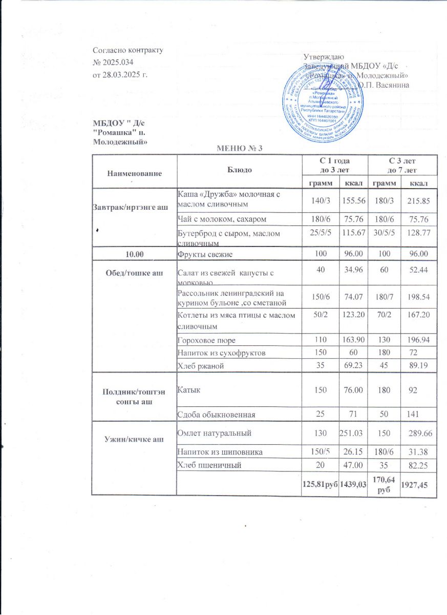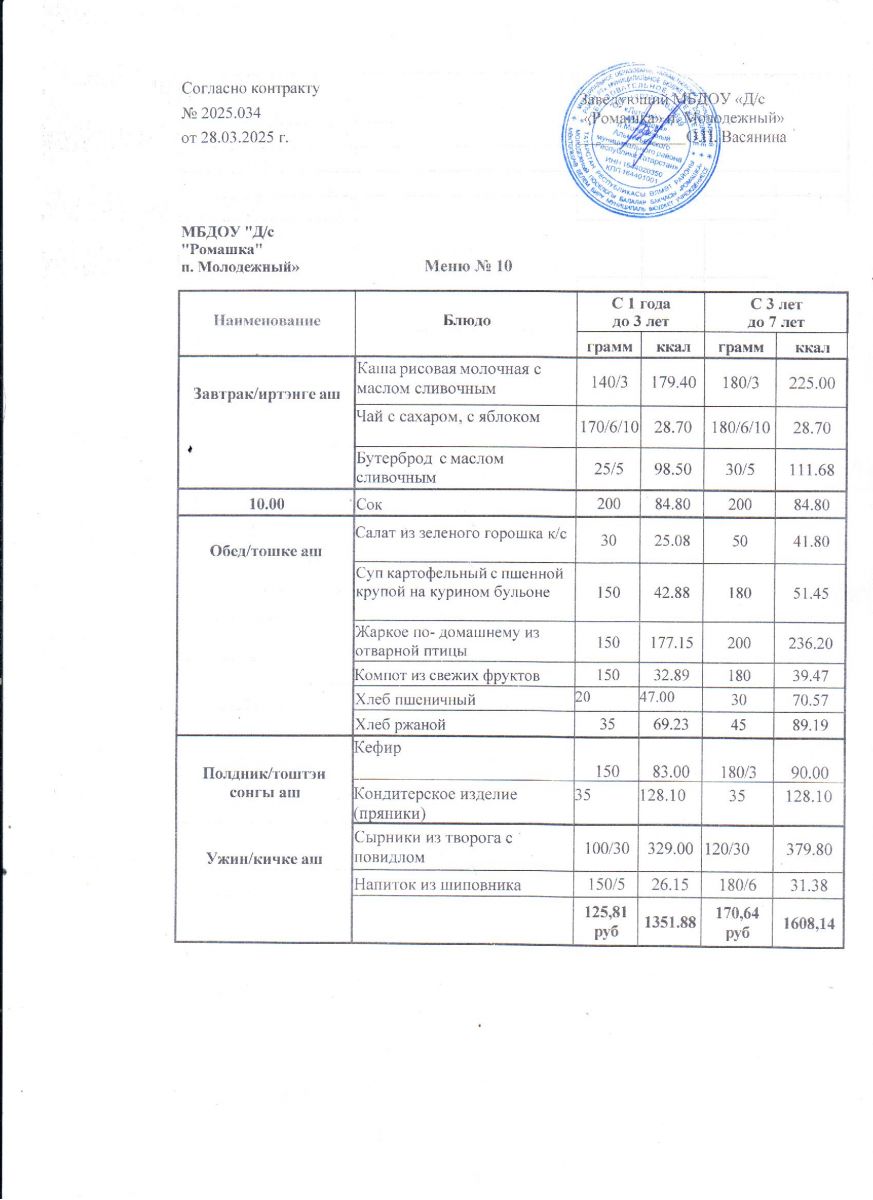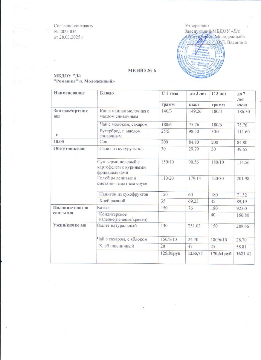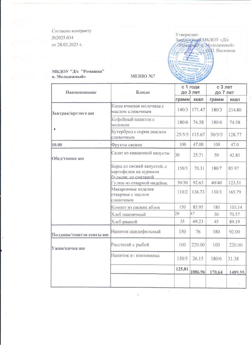 Контракт на питание №2025.034 от 28.03.2025.