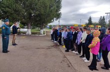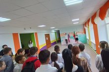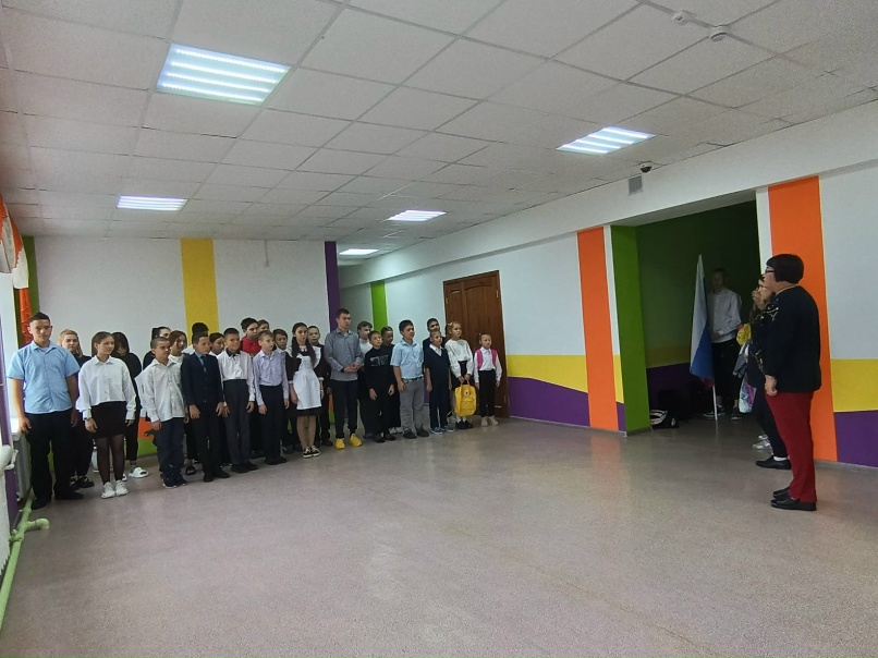 Каждый понедельник перед "Разговоры о важном" проводится линейка "Церемония поднятия флагов Российской Федерации и РеспубликиТатарстан"